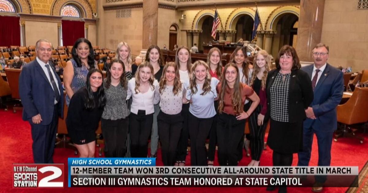 ALBANY, N.Y. – The Section III girls gymnastics team was honored at the New York State Capitol Building, Friday, after capturing its third straight NYSPHSAA team state championship back in March.