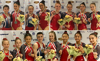 SOFIA, Bulgaria, Nov. 20, 2017 – The United States won 13 medals (four gold, three silver and six bronze) at the 2017 World Trampoline and Tumbling Age Group Competition at the Arena Armeec in Sofia, Bulgaria. The event determines champions in individual and synchronized trampoline, double mini-trampoline and tumbling for boys and girls in four age-groups (11-12,13-14,15-16 and 17-21). The USA’s World Age Group champions are: Kaden Brown of Herriman, Utah/Wasatch Trampoline & Tumbling, 15-16 boys tumbling; Eve Doudican of Bixby, Okla./Oklahoma Extreme Tumbling, 15-16 girls tumbling; Vivian Schanely of Millstone, N.J./Garden State Trampoline Academy, and Ava Hernando of Holmdel, N.J./Elite Trampoline Academy, 11-12 girls synchronized trampoline; and Allie Singer, Ladera Ranch, Calif./World Elite Gymnastics, 13-14 girls double mini-trampoline.